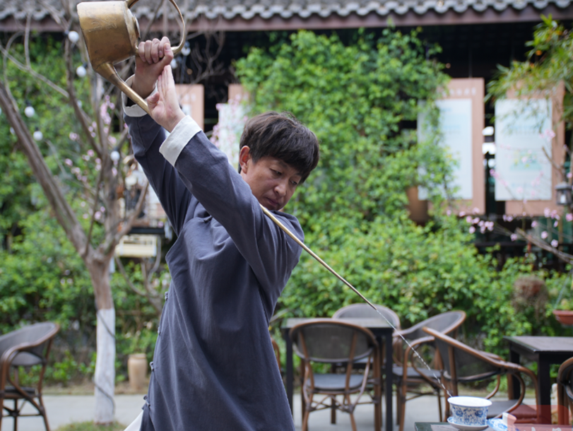 是近年成都最火的「新派老茶館」之一,而它最吸睛的靈魂節目,就是—長嘴壺功夫茶表演。